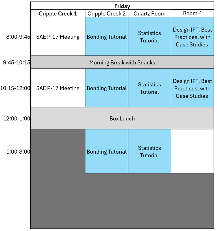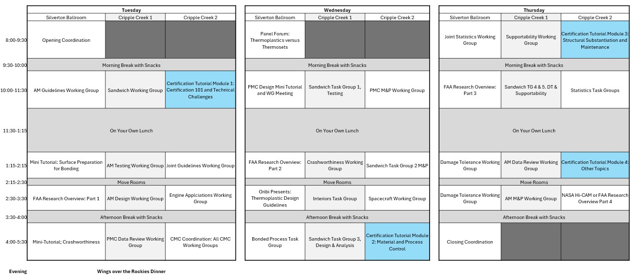 We are hosting mini tutorials at our CMH-17 coordination meeting along with our working group and task group sessions, FAA sponsored research presentations, and our regular all-day tutorials.